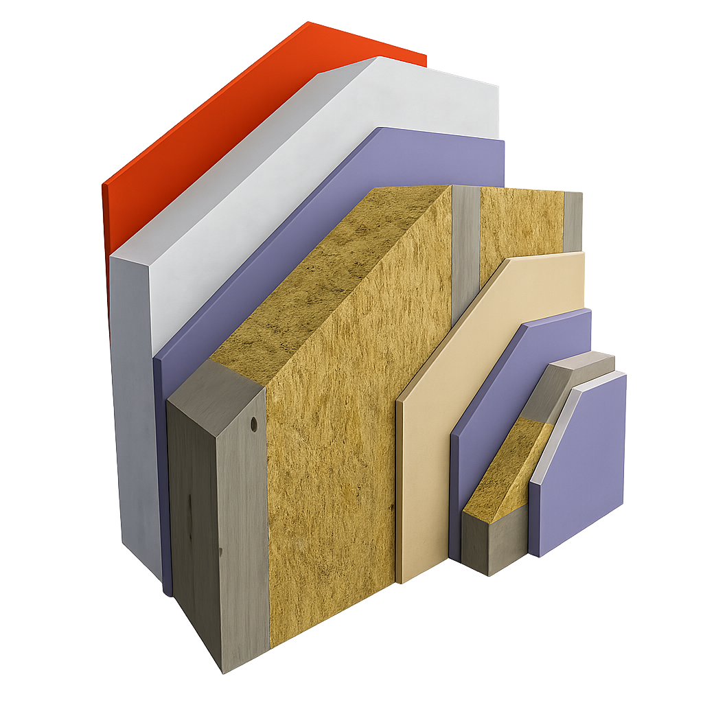 Izolácia je primárne zabezpečená minerálnou vlnou, avšak podľa preferencií zákazníka môžeme použiť aj iné materiály.