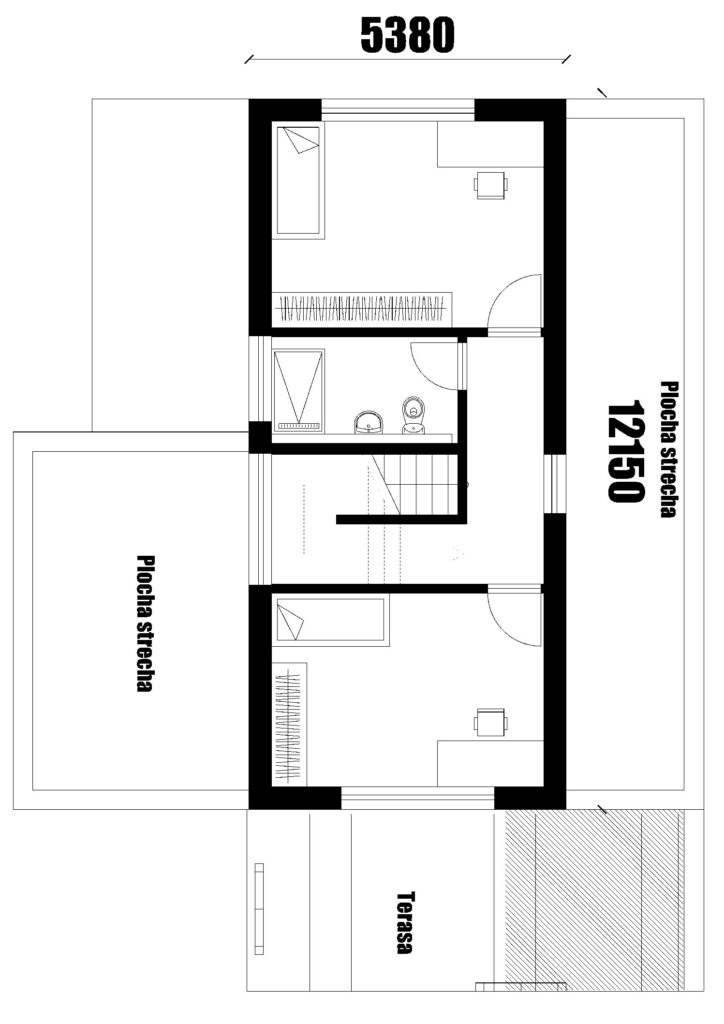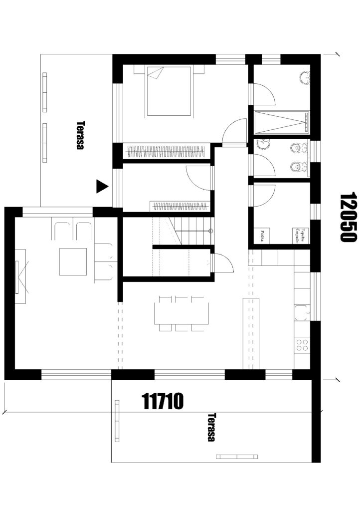 Rodinný dom Katka 143 je ideálne riešenie pre 3 až 4 člennú rodinu. Vstupujeme do malej predsiene, ktorá disponuje miestom pre šatníkovú skriňu. Z predsiene vstupujeme do chodby v ktorej sa nachádza samostatný záchod pre hostí, schodisko s kumbálom a technická miestnosť, ktorú je možné užívať aj ako práčovňu. Po ľavej strane sa nachádza spálňa so samostatnou kúpeľňou a miestom pre veľkú šatníkovú skriňu. Po pravej strane sa nachádza denná zóna ktorá disponuje spojenou kuchyňou, jedálňou a obývacou izbou. Po schodisku v tvare U sa dostaneme do druhej časti nočnej zóny kde sa nachádzajú dve izby s kúpeľňou. Z vonku dom disponuje terasou s pergolou. Projekt domu je dostupný aj v zrkadlovom prevedení, v ktorom sú možné väčšie aj menšie úpravy.