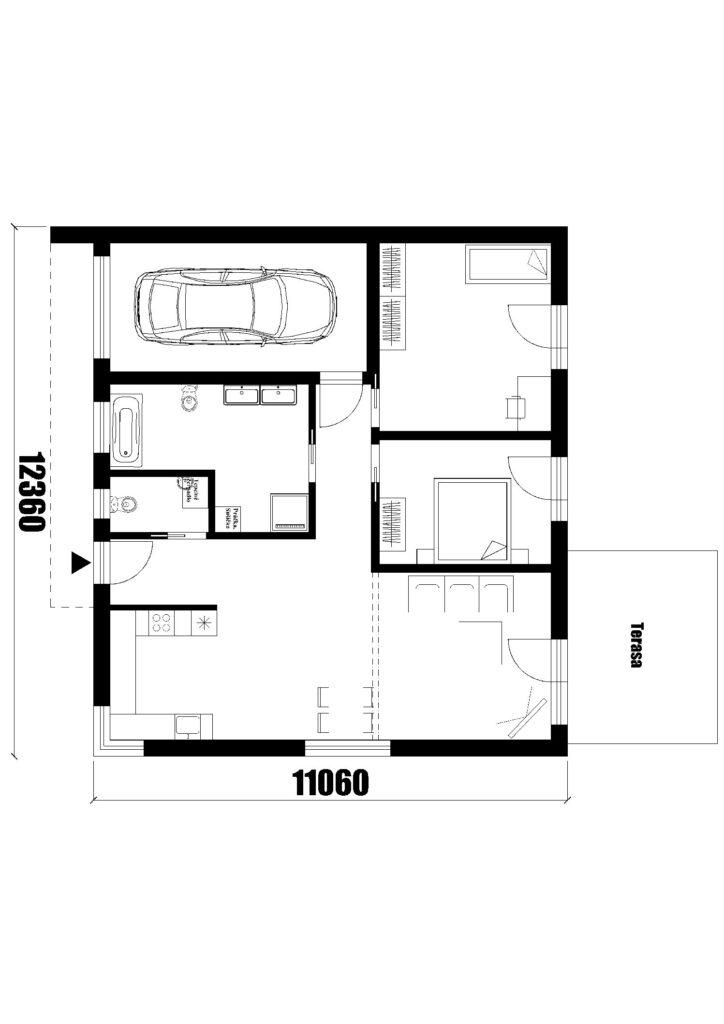 Rodinný dom Lucia 111 je ideálne riešenie pre 2 až 3 člennú rodinu. Vstupujeme do malej predsiene, ktorá disponuje samostatným záchodom pre hostí po ľavej strane. Z chodby priamo vstupujeme do dennej zóny domu v ktorej sa nachádza otvorená kuchyňa, jedáleň a obývacia izba. Z dennej zóny sa presunieme do nočnej, ktorá disponuje jednou izbou, spálňou a kúpeľňou. Z vonku dom disponuje terasou. Rodinný dom disponuje plochou strechou. Projekt domu je dostupný aj v zrkadlovom prevedení, v ktorom sú možné väčšie aj menšie úpravy.