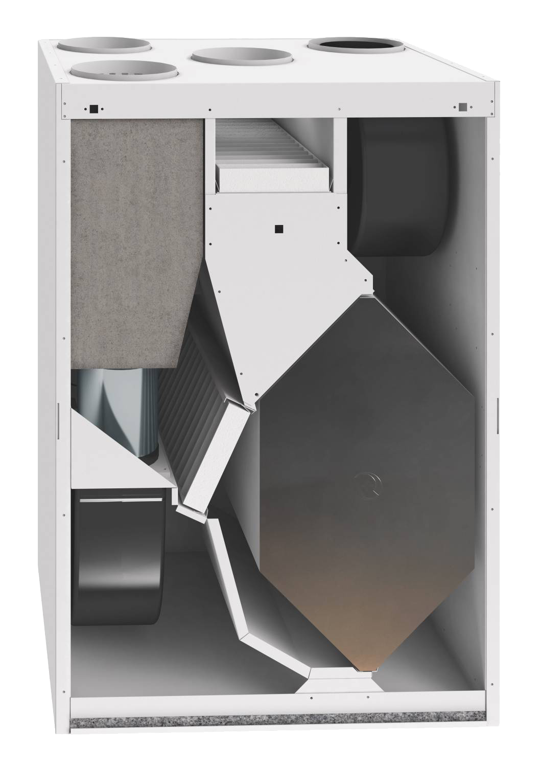 Pri tlakovej strate 100 Pa dosahuje vzduchový výkon cca. 356 m3/h a účinnosť 90,5% a spotrebu má len 102 W! Na najnižšom výkonovom stupni má spotrebu len 12 W. Má najväčší výmenník zo všetkých jednotiek, ktorý zabezpečuje skvelú účinnosť.