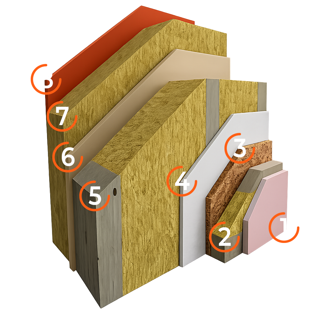 Prémiová difúzne otvorená konštrukcia s vysokou izoláciou vďaka minerálnej vlne a KVH nosníkom, zaručujúca optimálnu klímu.